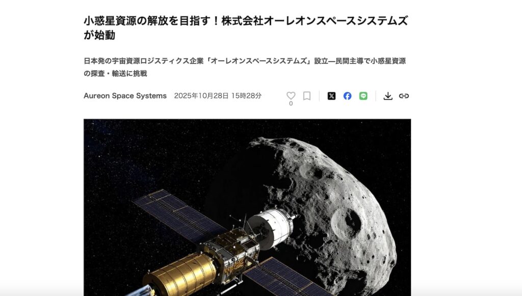 株式会社オーレオンスペースシステムズ(本社:東京都港区、代表取締役:若元 淳鷹、以下「オーレオン」)は、2025年10月に設立しました。